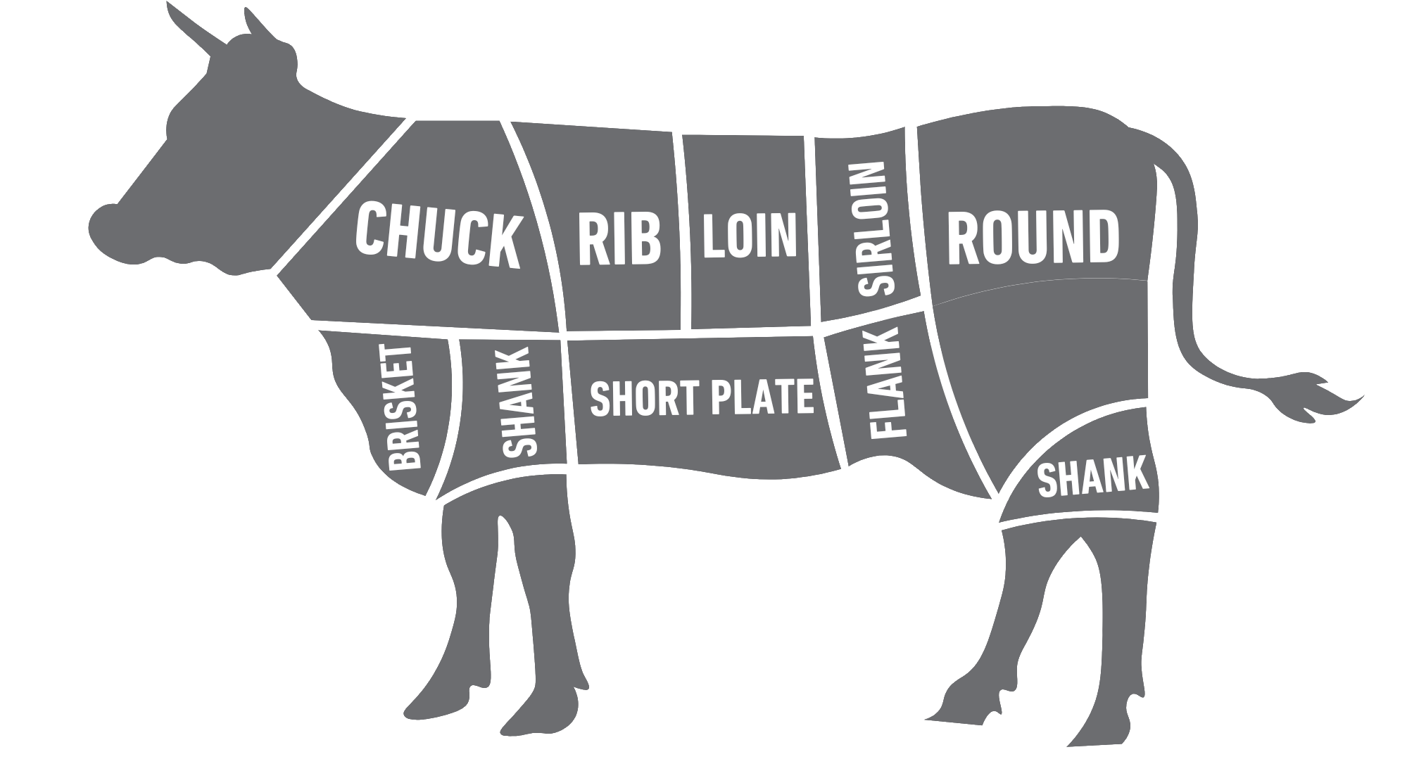 Home to lean, inexpensive cuts that come from the rump and hind legs. The muscles in this area are used for movement, so the beef is leaner and less tender. Often sold as roasts, steaks for marinating or Ground Beef.